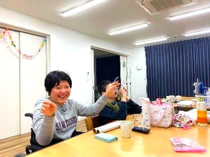 みんなでいきいきとした日々を過ごすことを目標に、障害の垣根を越えて、日常的なケアと ともに、生きがいづくりにも挑戦しています。菜園活動や内職活動、外出支援など、それぞ れやってみたいことを自由に行える環境づくりに心掛けています。